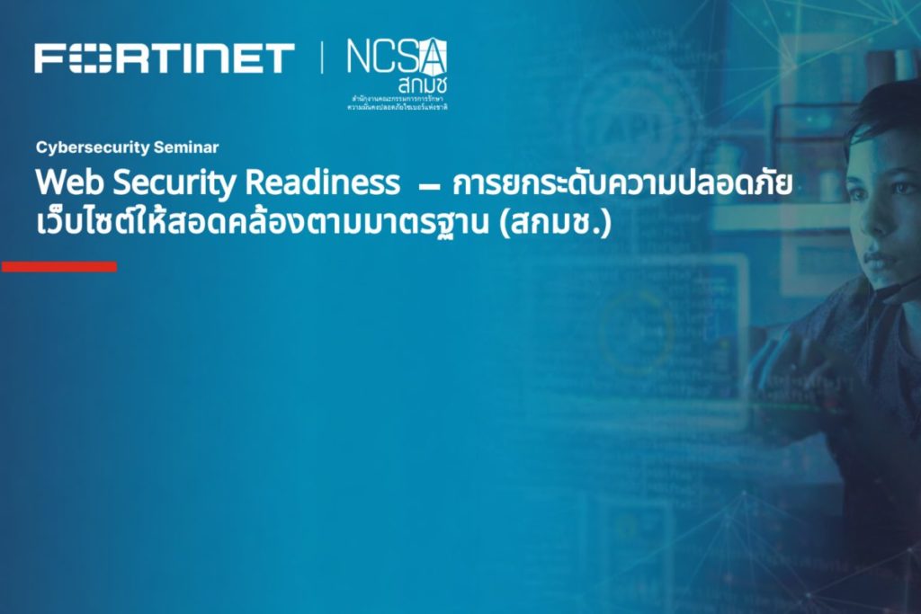 จากแนวโน้มภัยคุกคามทางไซเบอร์ที่มีความซับซ้อนมากขึ้น ฟอร์ติเน็ตมุ่งมั่นพัฒนาโซลูชันด้านความมั่นคงปลอดภัยไซเบอร์ เพื่อช่วยให้องค์กรและหน่วยงานภาครัฐสามารถบริหารจัดการเว็บไซต์ได้อย่างปลอดภัยและมีประสิทธิภาพ ทั้งนี้ ผู้ที่สนใจเข้าร่วมงานสัมมนา Web Security Readiness: ยกระดับความปลอดภัยเว็บไซต์ให้สอดคล้องตามมาตรฐาน (สกมช.) เพื่ออัปเดตแนวทางและความพร้อมด้านความมั่นคงปลอดภัยเว็บไซต์ ซึ่งจะจัดขึ้นในวันศุกร์ที่ 20 กุมภาพันธ์ 2569 เวลา 09.00-12.00 น. ณ ห้องประชุมกรุงเทพ 2 ชั้น M โรงแรมเซ็นทารา แกรนด์ แอท เซ็นทรัลพลาซ่า ลาดพร้าว กรุงเทพ สามารถลงทะเบียนได้ที่นี่