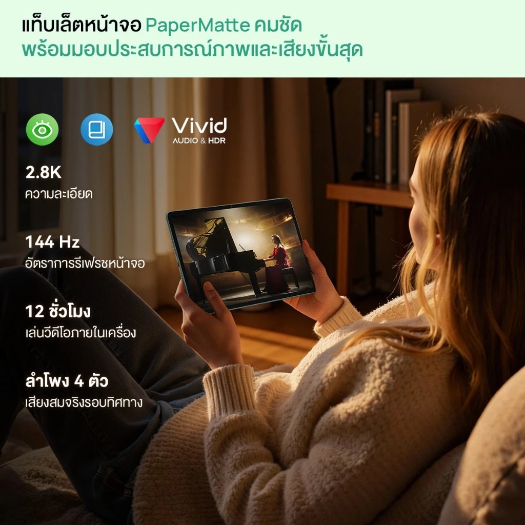 HUAWEI MatePad 11.5 S 2026 โดดเด่นด้วยหน้าจอ Ultra-Clear PaperMatte Display ที่ผลิตด้วยกระบวนการ High-precision Nano-level Etching ลดการกระเจิงของแสงได้ถึง 50% พร้อมมอบผิวสัมผัสเหมือนกระดาษ หน้าจอมีความละเอียดสูง 2800×1840 พิกเซล อัตรารีเฟรช 144Hz, สว่าง 1000 nits รองรับ P3 wide color gamut และ HDR Vivid ควบคู่ไปกับคุณสมบัติถนอมสายตา Anti-Glare, Anti-Reflection และ Anti-Fingerprint สำหรับการสร้างสรรค์ มีแอปพลิเคชัน HUAWEI Notes (พร้อม AI จดจำลายมือและสมการ) และ GoPaint (แอปวาดภาพจากหัวเว่ย พร้อมฟีเจอร์อัจฉริยะ เช่น การดึงสี และแอนิเมชัน) ทั้งหมดนี้บรรจุในดีไซน์ Unibody โลหะบาง 6.1 มม. หนัก 515 กรัม พร้อมแบตเตอรี่ 8800 mAh, ระบบเสียง Histen 9.0 และกล้อง 8MP/13MP ตอบโจทย์ทุกสไตล์การทำงาน การเรียนรู้ และการสร้างสรรค์ของคนรุ่นใหม่