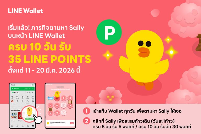 LINE Wallet ต้อนรับฤดูกาลซากุระ ชวนผู้ใช้งานร่วม “ภารกิจตามหาแซลลี่: ต้อนรับซากุระบาน ฤดูกาลรับพอยท์” เช็กอินต่อเนื่อง 10 วัน ลุ้นรับสูงสุด 35 LINE POINTS ถึง 20 มี.ค. นี้